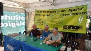Como parte de las mesas de debate previstas dentro del segundo día en la Carpa de la CTA, se desarrolló el panel sobre el Mundo del trabajo y la precariedad Laboral. La mesa de conducción estuvo integrada por Cesar Baliña, secretario gremial de ATE y secretario general de CTA La Plata-Ensenada; Antonio Borja, secretario general de ATE Hurlingham-Ituzaingò; Jorge Castro, secretario general de UETTEL y secretario gremial de CTA Bs As; Mario Barrios de UST y CTA Nacional y Toto Marcioni del Movimiento Justicia y Libertad.