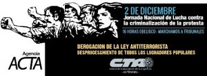 ATE ha resuelto convocar a una Jornada Nacional de Lucha de los trabajadores del Estado Nacional el día 3 de diciembre de 2015 que contará con una movilización central en capital a la jefatura de gabinete porteño. Ese día habrá paros activos y asambleas en cada sector de trabajo, y movilizaciones en todas las ciudades de territorio argentino, en reclamo de: