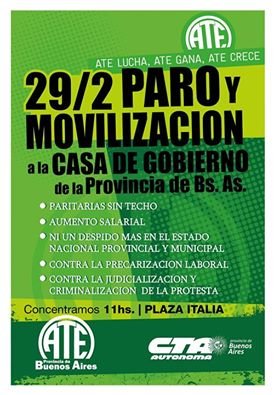 La jornada de lucha estatal tuvo un alto acatamiento en toda la Argentina. Administraciones y servicios del Estado nacional, provinciales y municipales se vieron paralizados, como llenas las plazas de las principales ciudades del país.