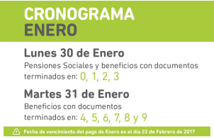 La tesorería del gobierno de la provincia de Buenos Aires, informa el siguiente cronograma de pago de pago del mes de enero de 2017.