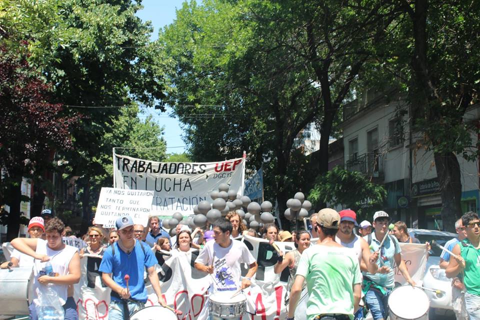 A las 10 los estatales se concentraron en la Unidad Ejecutora Provincial y marcharon por las calles de la ciudad hacia la cartera educativa para culminar con un acto frente a la casa de gobierno de la provincia de Buenos Aires.
