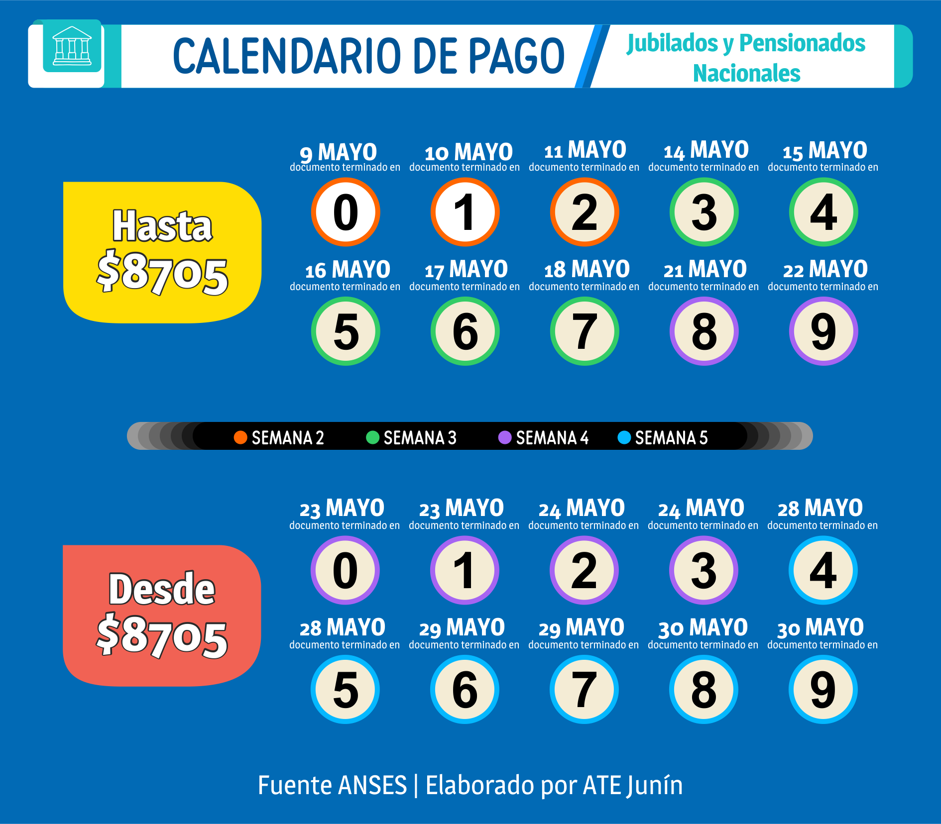 La Administración Nacional de la Seguridad Social (ANSeS), informa que los jubilados y pensionados de la Nación percibirán los haberes del mes de mayo de 2018, entre los días miércoles 9 y el miércoles 30 de mayo de 2018 según cronograma que se detalla a continuación: