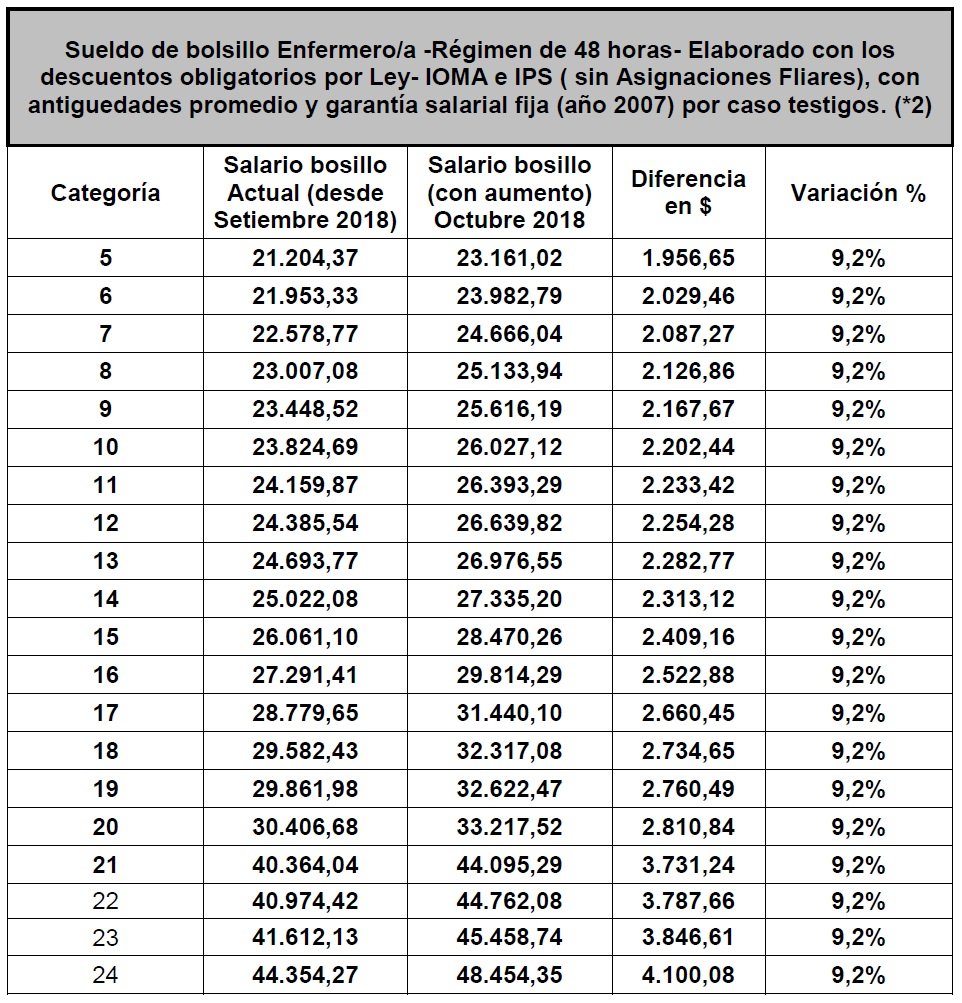 Planilla Enfermería| Salarios testigos Octubre 2018