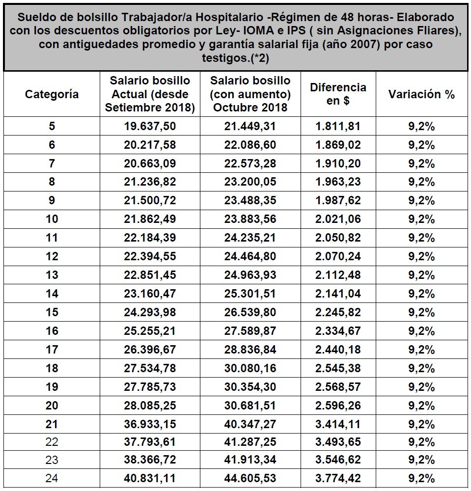 Dichas planillas contemplan la propuesta salarial del 10 de octubre de 2018 en detalle, y el impacto en Sueldos Básicos y Ejemplos de Salarios de Bolsillo.