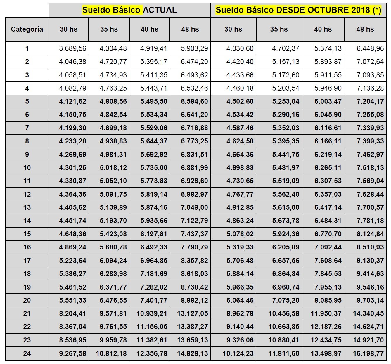 Planilla Sueldos Básicos Ley 10.430 | Octubre 2018