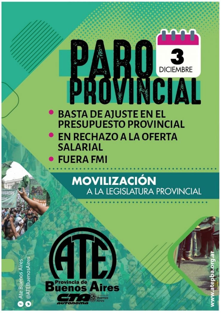 ATE anuncia jornada de paro Provincial, en rechazo a la propuesta salarial.