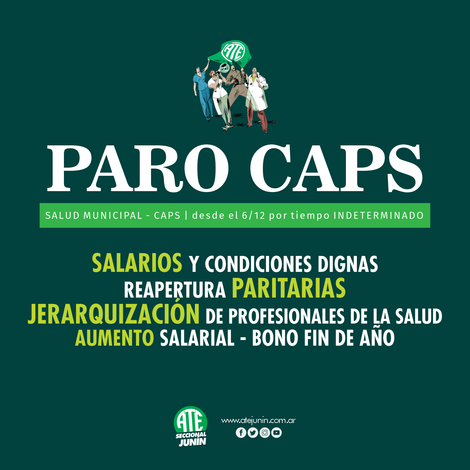 La Asociación Trabajadores del Estado, informó al Ministerio de Trabajo que a partir del día lunes 6 de diciembre de 2021, se realizará paro por tiempo indeterminado en el ámbito de Atención Primaria de Salud de la Municipalidad de Junín, acompañando y avalando desde este gremio, todas las medidas que legítimamente tomen las trabajadoras y trabajadores.