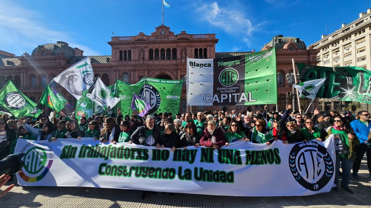 La Asociación Trabajadores del Estado (ATE) realizó un una nueva Jornada Nacional de Lucha y una olla popular frente a la Casa Rosada contra las políticas de hambre y ajuste del Gobierno nacional en medio de la segunda ola de despidos de la Administración Pública.