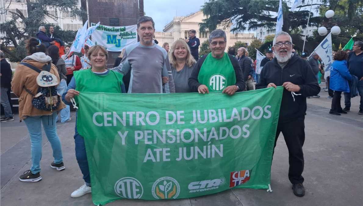 En el marco del paro nacional de 36 horas convocado por la CTA Autónoma, la CTA de los Trabajadores y la CGT, ATE Junín participó de la movilización realizada en la Plaza 25 de Mayo de nuestra ciudad, acompañando a las y los jubilados en su histórica lucha.
