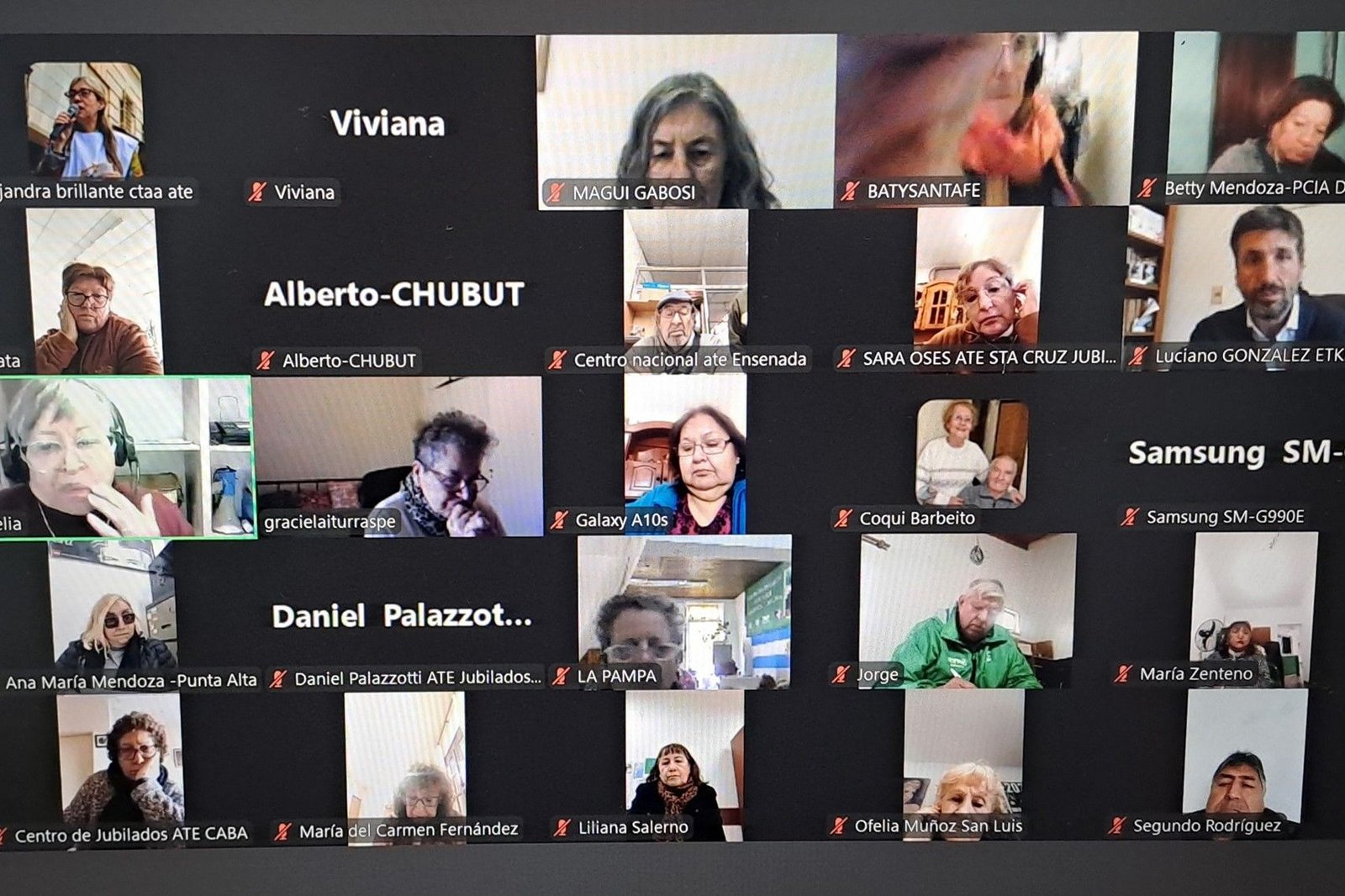 A través de un encuentro por Zoom realizado este lunes, el Centro Nacional de Trabajadores Jubilados y Pensionados (CNTJyP) de la Asociación Trabajadores del Estado (ATE), junto a centros de jubilados provinciales y municipales de todo el país, debatieron la crítica situación que atraviesa el sector pasivo en el contexto del ajuste impulsado por el Gobierno nacional.