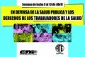 La Asociación Trabajadores del Estado convoca, del 9 al 13 de abril, a la semana nacional de lucha en defensa de la salud pública y los derechos de los trabajadores del sector. En diferentes ciudades del país se realizarán actividades como la retención de tareas, asambleas, movilizaciones, radios abiertas, mesas debate y volanteadas. El jueves 12 de abril se llevará a cabo una concentración frente al Ministerio de Salud de la Ciudad de Buenos Aires (C. Pellegrini 300) para luego marchar al mediodía hacia la sede del Ministerio de Salud de la Nación (Belgrano y 9 de Julio).