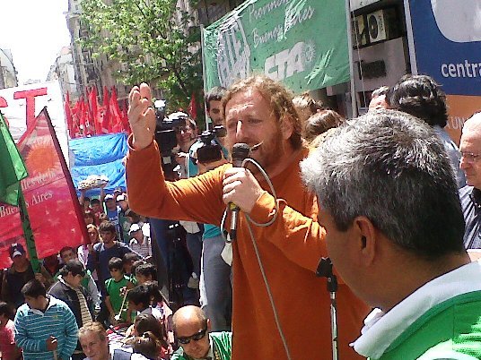 - Las consignas fundamentales de este abrazo son: con 6 pesos por día no se come, 6 años de mentira, seis años de lucha.