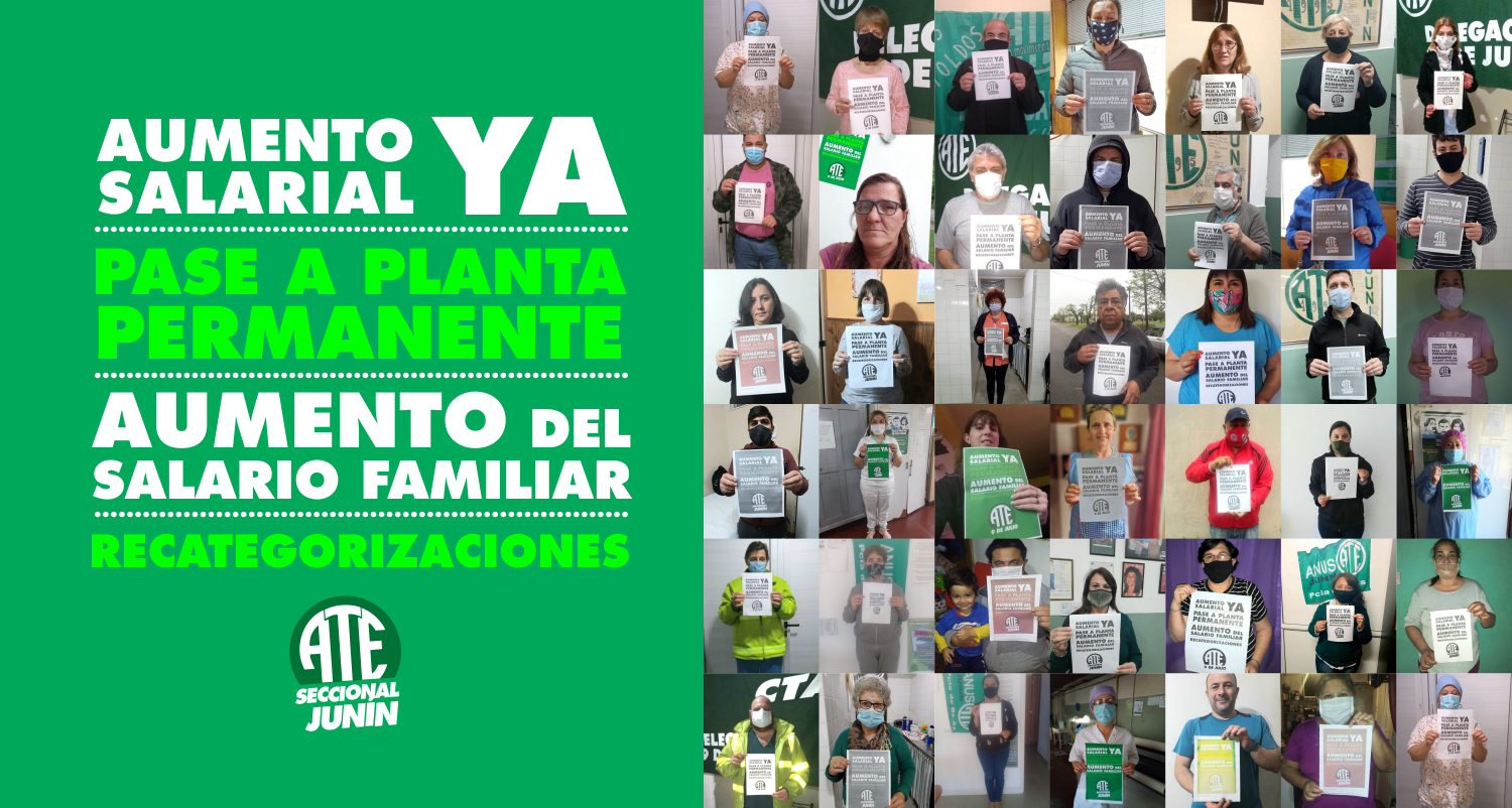 Los y las estatales exigimos al Gobierno: Aumento salarial YA! Recategorizaciones Aumento en las asignaciones familiares Pase a planta permanente Nuevo convenio…