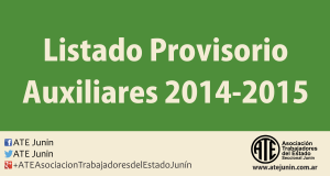 ATE informa que Se encuentra a la vista de todos los inscriptos el listado provisorio 2015 de porteros y cocineros, el listado…