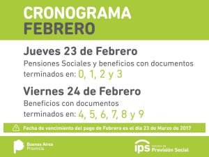 La tesorería del gobierno de la provincia de Buenos Aires, informa el siguiente cronograma de pago de pago del mes de febrero…