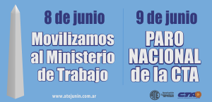 La CTA confirma su paro nacional para el próximo martes 9 de junio de 2015, en reclamo de diferentes situaciones.