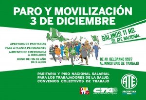 El próximo 3 de diciembre de 2014, se lleva a cabo la jornada de Paro NACIONAL de ATE. Movilizamos al Ministerio de…