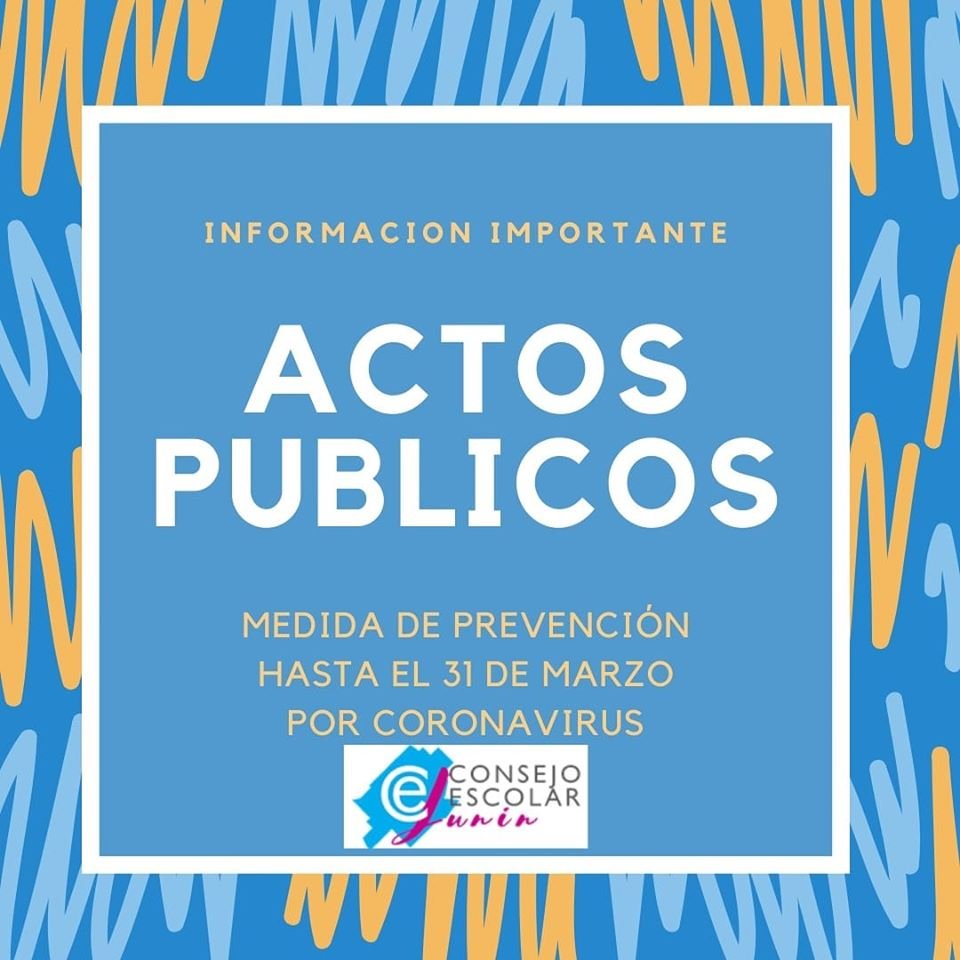SUSPENDIDO El Consejo Escolar de Junín informó mediante su Facebook Oficial www.facebook.com/consejojunin cómo serán los actos públicos. “Debido a los sucesos sobre…