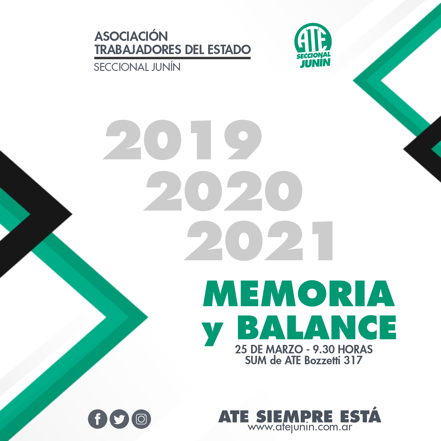 La seccional de ATE Junín, convoca a participar de la Asamblea Anual y Ordinaria, tendrá lugar el próximo viernes 25 de marzo…