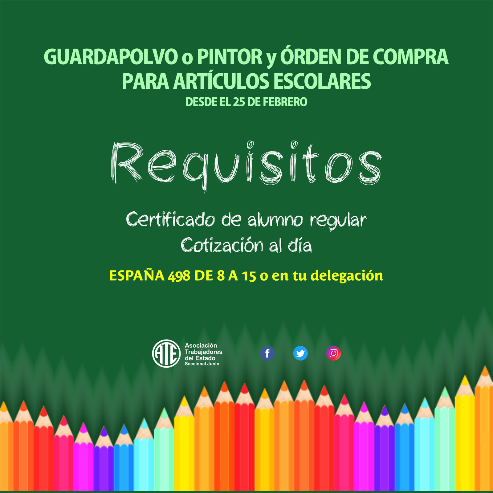 esde el día lunes 25 de febrero de 2019, estaremos haciendo entrega a nuestros afiliados de la seccional y delegaciones, de guardapolvo…