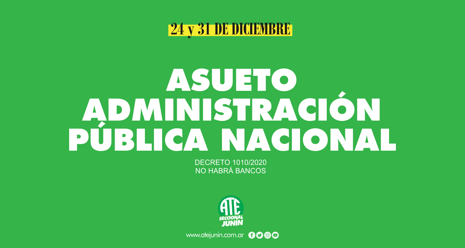 El Gobierno Nacional otorga Asueto Administrativo para los días 24 y 31 de diciembre de 2020, mediante el Decreto 1010/2020 publicado el…
