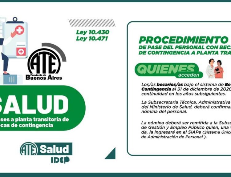 El Ministerio de Salud de la Provincia de Buenos Aires ha iniciado el procedimiento para el pase a planta transitoria del personal…