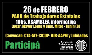 Con motivo del paro programado para el próximo 26 de febrero, en Junín haremos una Asamblea informativa abierta a la hora 10…